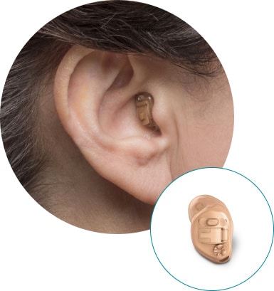 This hearing aid is placed in the ear canal and is the smallest available. It takes advantage of the ear’s natural ability to collect sound, and its discreet size makes the device virtually invisible to others.